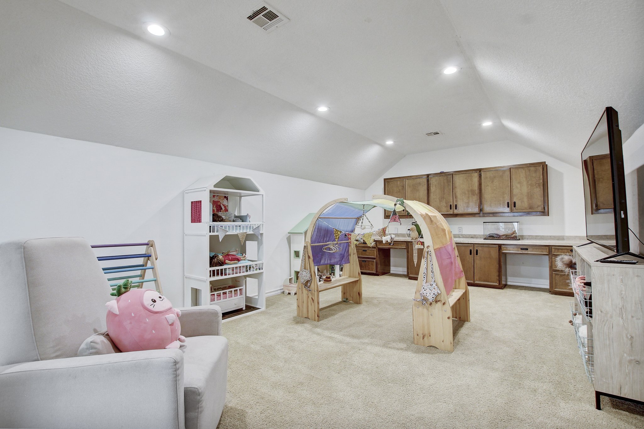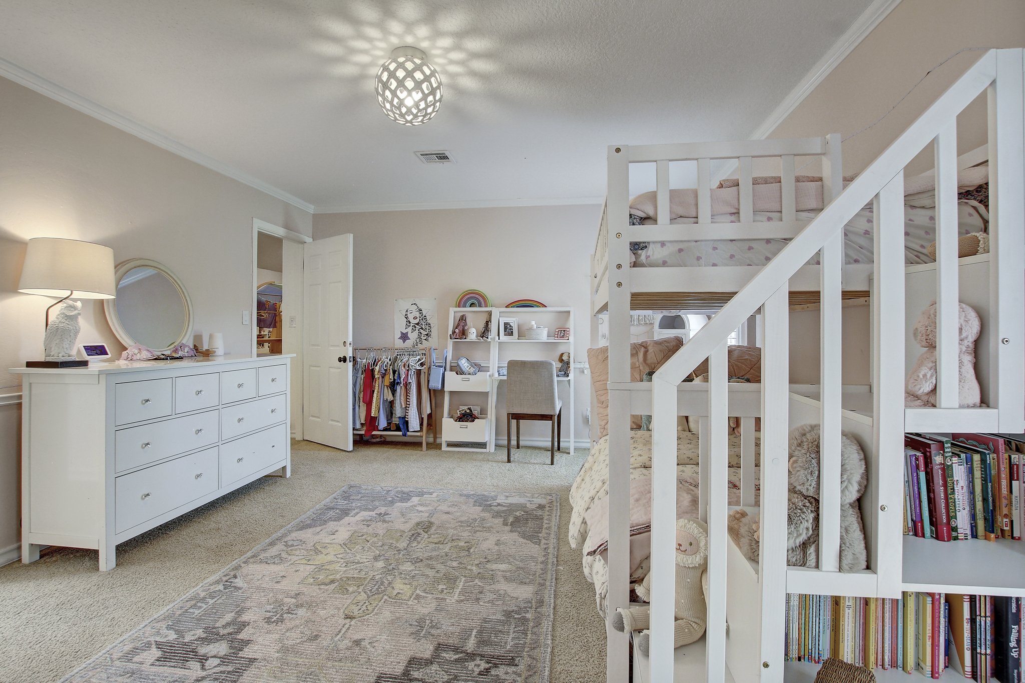 Large master suite on the first floor with spa-quality en-suite bathroom, 2 huge walk-in closets, and a private courtyard. 3 bedrooms upstairs with one en-suite and one jack-and-jill bathroom + a large media room. Private park with multiple playscapes, swings, sand box, basketball court and duck pound just a quick walk across the golf course.