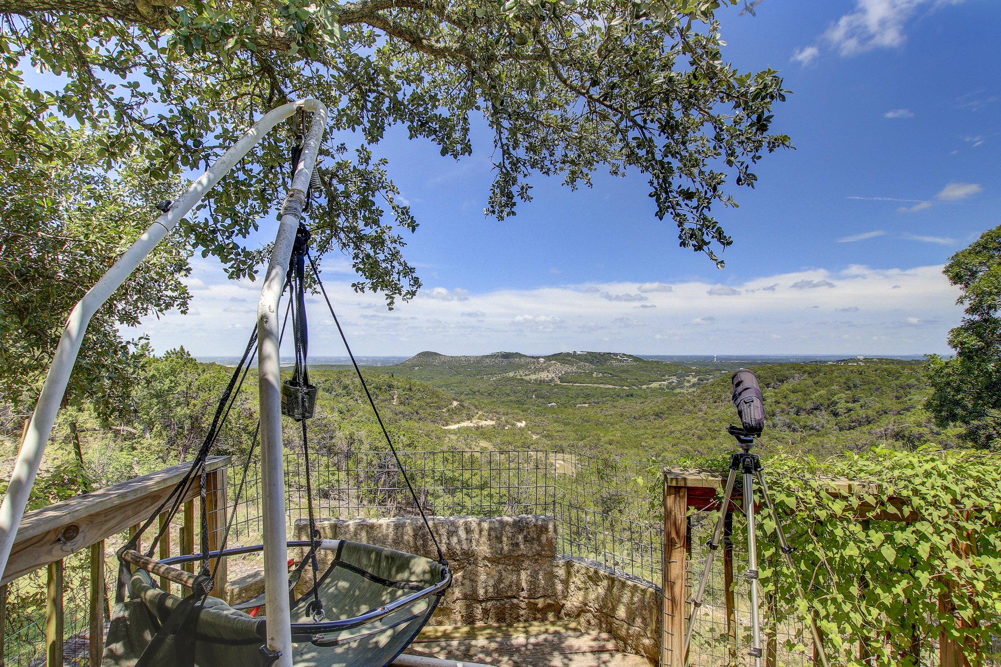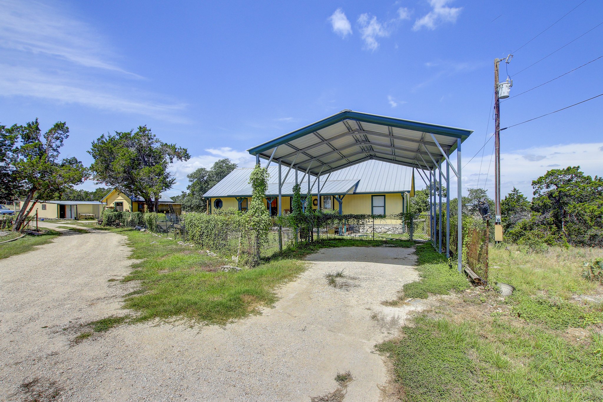 This property is one of a kind, with 10+acres and breathtaking views! Includes numerous buildings w/fully equipped infrastructure! Just miles from New Braunfels, Wimberley, San Marcos, and Canyon Lake! Close to Whitewater Ampitheater, Blue Hole and Gruene Hall. The main house features 3 beds/2 baths, a covered back deck, covered front patio, remodeled hall bathroom, all appliances convey, some home furnishings negotiable to convey, metal roof, handicap compliant, wood laminate flooring, gas propane fireplace, fridge /oven are less than 6 years old.